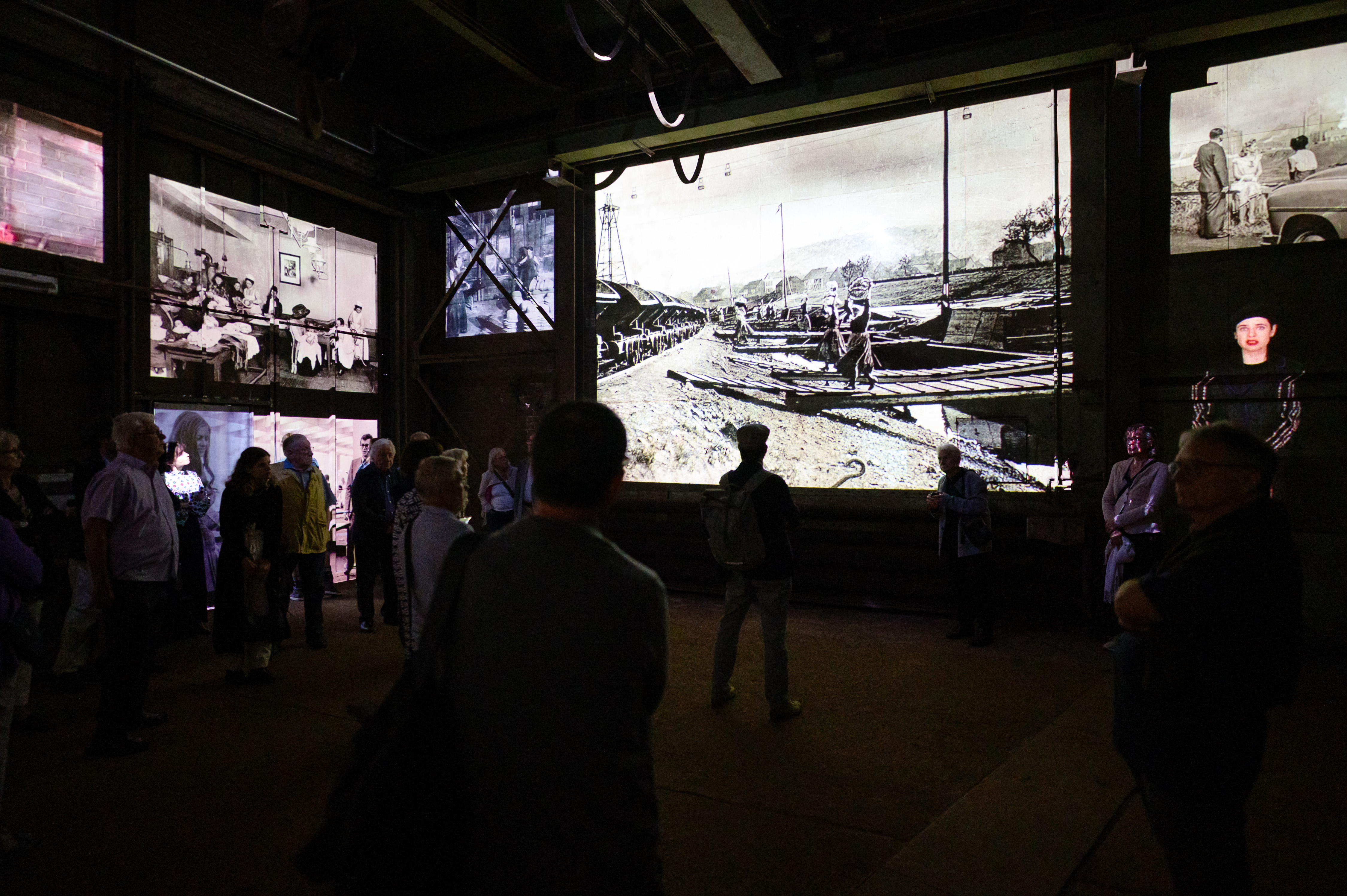 Dans son installation multimédia monumentale WE ALL (Except the Others), Rémy Markowitsch transforme l’atelier historique des wagons suspendus de la Völklinger Hütte en un vaste champ de mémoire. Entre les haldes de laitier, les maisons de benzol et l’église de la Réconciliation se déploie un réseau dense mêlant histoire et présent : travail forcé, destruction de l’environnement, pouvoir et mythe de la famille Röchling. Des archives, de nouvelles scènes filmées et des voix s’entrelacent pour former un hommage poétique et dérangeant à un héritage contradictoire.